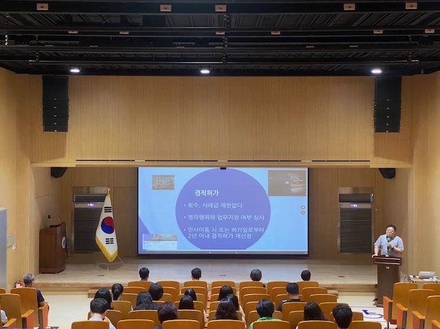 이번 교육은 대전시교육청 청렴강사 인력풀을 활용해 전문강사를 초빙하여 진행했으며, 청탁금지법, 공무원행동강령, 이해충돌방지법, 갑질 예방에 관한 구체적인 사례 분석과 질의응답을 통해 직원들의 높은 관심과 참여를 이끌어냈다.