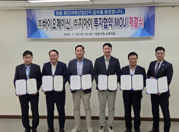 도와 정읍시는 30일 정읍시청에서 ㈜바이오메이신과 ㈜지아이와 총 108억 원 규모의 투자협약(MOU)을 체결했다고 밝혔다.