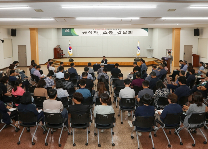 주영환 부군수는 13일 군청 강당에서 국소장, 실과‧읍면장, 군 전체 실과 팀장 등 110여명이 참석한 가운데 소통 간담회를 가졌다.