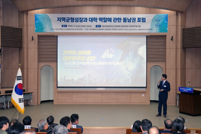 [무한뉴스=최진수 기자] 경상국립대학교는 11월 5일 오후 3시 가좌캠퍼스 인문대학 교양강의실에서 ‘지역균형성장과 대학 역할에 관한 동남권 포럼’을 개최했다.