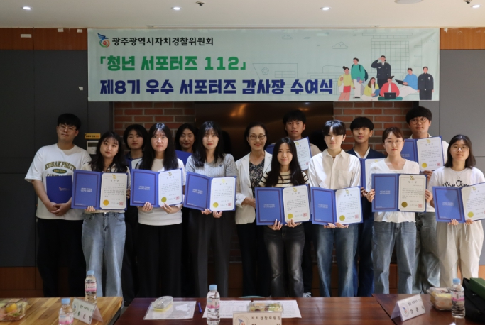 [무한뉴스=정민정 기자] 광주광역시자치경찰위원회는 30일 ‘청년서포터즈 112’ 제8기 우수 서포터즈에게 감사장을 수여했다.