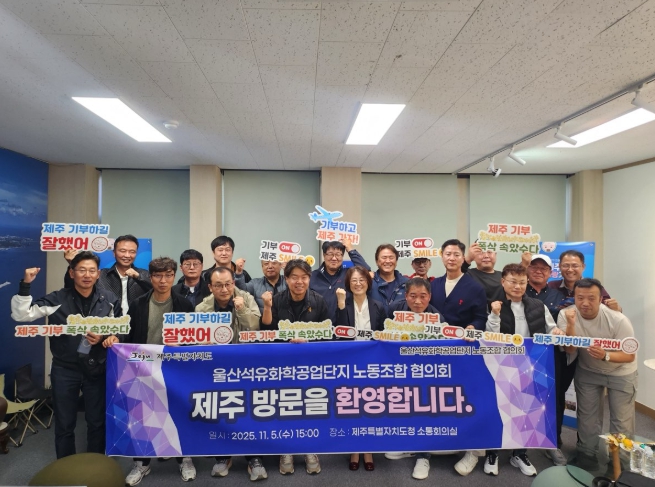 [무한뉴스=정민정 기자] 제주특별자치도는 울산석유화학공업단지 노동조합협의회(의장 우영석)가 5일 제주도청을 방문해 고향사랑기부금을 전달했다고 밝혔다.