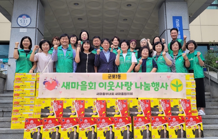 [무한뉴스=손성기 기자] 군포1동 새마을부녀회와 새마을지도자협의회는 민족 최대의 명절인 추석을 앞두고 지역사회 소외계층을 위한 따뜻한 이웃나눔 활동으로 라면 80박스(100만원 상당)를 18일 군포1동 행정복지센터에 기탁했다.