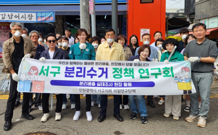 [무한뉴스=양현명 기자] 인천 서구의회 의원연구단체 '서구 분리수거 정책 연구회'는 9월 18일 오전 석남동 강남시장 일대에서 폐기물 분리배출 실태를 직접 확인하는 현장조사를 진행했다.