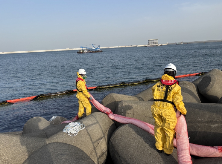 ▲ 울산해경, 온산읍 육상 송유관 파손 기름 해상 유출 방제작업 완료 |