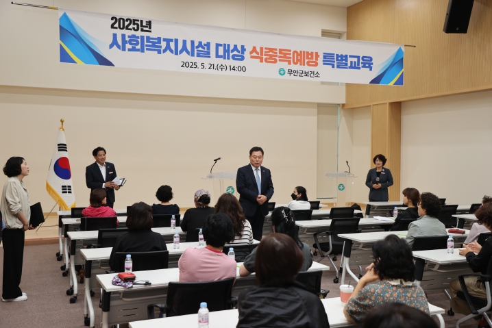 전남 무안군은 21일 보건소에서 관내 50인 미만의 소규모 급식 시설을 운영 중인 사회복지시설 관리자와 종사자 54명을 대상으로 식중독 예방 특별교육을 실시했다.