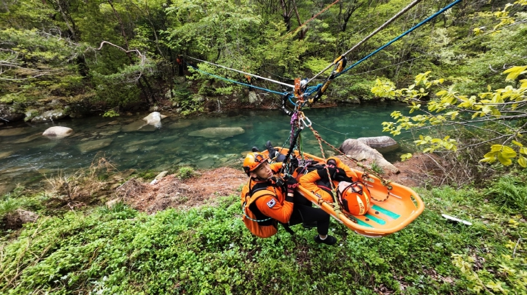 특히, 등산객 및 해안절벽 추락사고를 가정하여 30m 높이에서 수직구조와 경사면 구조 등 다양한 방식의 로프 인명구조를 진행했다. 각 소방서 및 유관기관 산악구조 기술 교류와 협업을 통해 산악사고에 대한 통합 대응능력 및 신속대응체계를 강화했다.