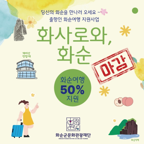 [무한뉴스=정민정 기자] (재)화순군문화관광재단(이사장 구복규)은 2025년 출향인 화순여행 지원사업 ‘화사로와, 화순’이 많은 사람들의 호응과 참여로 지난 7월 9일 지원 예산이 모두 소진되어 조기 마감됐다고 11일 밝혔다.
