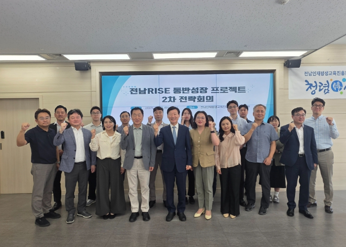 [무한뉴스=정민정 기자] 전남RISE센터는 23일 전남인재평생교육진흥원에서 과제별 5개 대학 담당자 및 전남도 관계자 등이 참석한 가운데 ‘전남RISE 동반성장 프로젝트 2차 전략회의’를 개최했다.