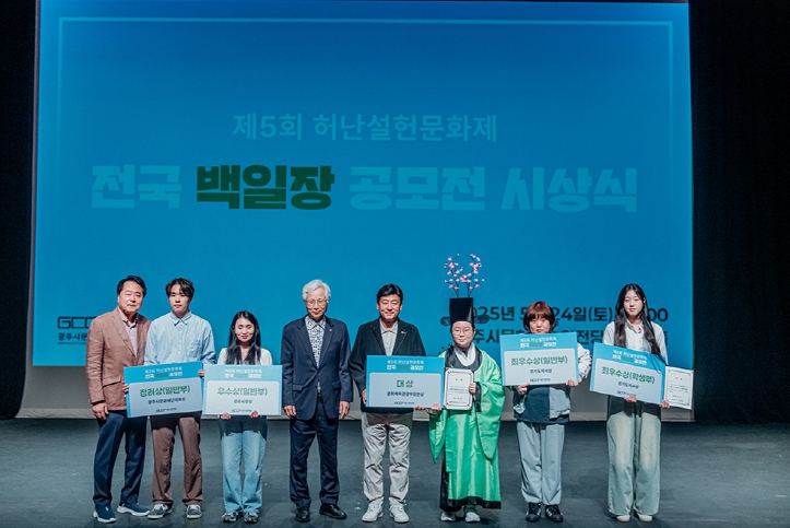 대표 프로그램인 ‘전국 백일장 공모전’은 시(운문) 부문으로만 진행됐으며, 서울, 경기, 강원, 전라, 경상, 제주 등 전국에서 총 187명의 참가자가 신청하여 백일장에 대한 뜨거운 관심을 입증했다. 대상은 문화체육관광부 장관상과 함께 상금 200만 원이 수여됐으며, 최우수상(경기도지사상), 우수상(광주시장상), 장려상(광주시문화재단대표상) 등 총 7명의 수상자가 선정됐다.