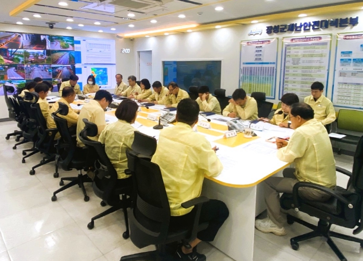 | ▲ 장성군이 13일 재난안전상황실에서 여름철 호우‧강풍 대비 상황판단회의를 열었다. |
