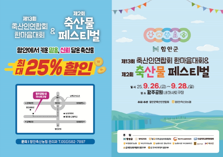 [무한뉴스=최진수 기자] 함안군은 9월 26~28일(3일간) 함주공원 마사토구장에서 ‘제13회 함안군축산인연합회 한마음대회’와 ‘제2회 축산물 페스티벌(축제)’을 개최한다고 밝혔다. 이번 행사는 급변하는 축산 환경 속에서 축산 농업인의 화합을 도모하고, 안전하고 우수한 함안 축산물을 널리 알리기 위해 마련됐다.