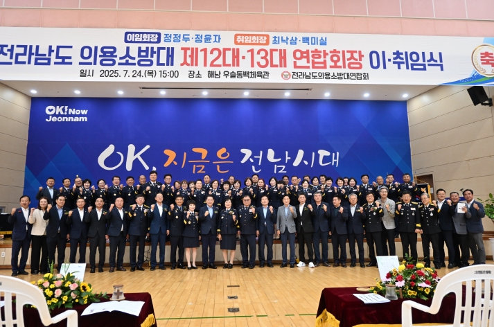[무한뉴스=정민정 기자] 전라남도 의용소방대 연합회는 24일 해남 우슬동백체육관에서 제12대ㆍ제13대 연합회장 이ㆍ취임식을 열어 행복한 전남 실현과 안전한 지역 만들기를 다짐했다.