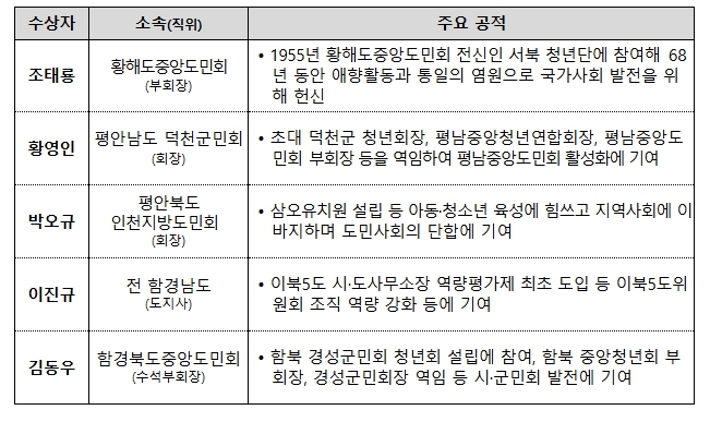 | ▲ ‘국가사회발전 이북도민 유공’ 국민훈장 동백장(5명) |