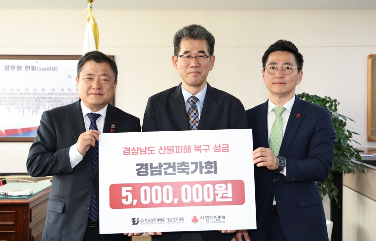 정성문 경남건축가회 회장은 “이번 성금이 산불로 어려움을 겪고 있는 지역 주민들에게 위로와 희망이 되기를 바란다”라고 말했다.