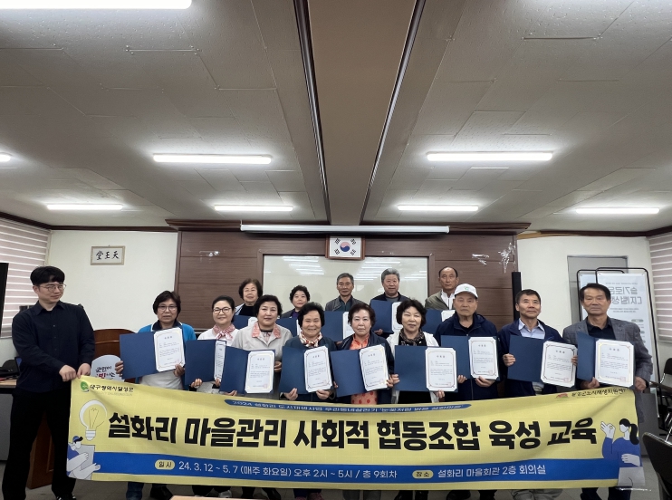[무한뉴스=최진수 기자] 달성군은 설화리 도시재생사업으로 육성된 ‘설화리마을관리사회적협동조합’이 국토교통부로부터 최종 설립 인가를 받았다고 25일 밝혔다.