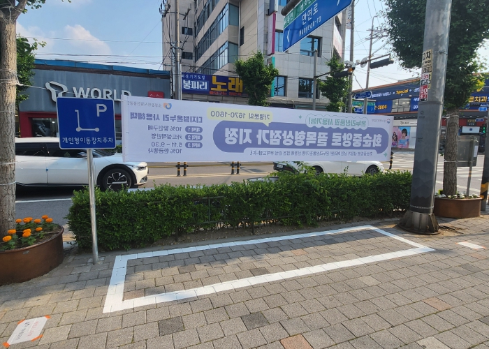 이번 사업은 PM 이용률이 높은 지역을 중심으로 노면표시와 함께 교통안전 표지판을 설치해 주차구역을 쉽게 확인하고 이용토록 했다. 또한, PM 공유업체와 협의해 개인형 이동장치 이용자들이 해당 구역에 주차하도록 유도할 계획이다.
