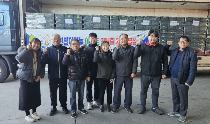 | ▲ 영천별아마늘 전국 이마트 매출 20억원 돌파 기념 출하 현장 기념촬영 |