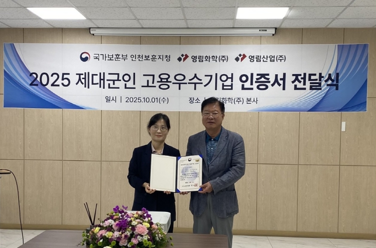 그 가운데 제대군인 채용에 적극적이고 고용안전성 및 고용환경 등이 우수한 기업을 선정하여 제대군인 고용우수기업을 인증하고 부여하는 제도를 운영하고 있으며 올해는 인천지역에서 영림화학㈜과 영림산업(주)이 선정 됐다.