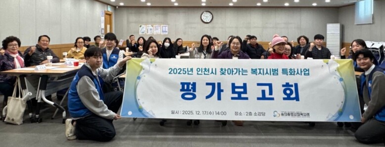 [무한뉴스=정승훈 기자] 인천 미추홀구 숭의종합사회복지관(관장 고성란)은 2025년 12월 17일 인천시 미추홀구청과 숭의·용현동 7개 행정복지센터, 지역사회보장협의체 관계자 총 33명이 참석한 가운데 ‘2025년 인천시 찾아가는 복지시범 특화사업 평가보고회’를 개최했다.