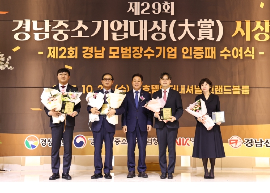 [무한뉴스=최진수 기자] 경상남도는 22일 오후 호텔 인터내셔널 창원에서 ‘제29회 경남중소기업대상 시상식’ 및 ‘제2회 경남 모범장수기업 인증패 수여식’을 개최했다.
