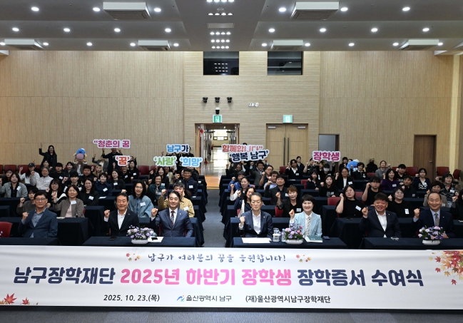 [무한뉴스=최진수 기자] 재단법인 울산광역시남구장학재단(이사장 서동욱 남구청장)은 23일 남구청 6층에서 ‘2025년 하반기 장학증서 수여식’을 개최했다.