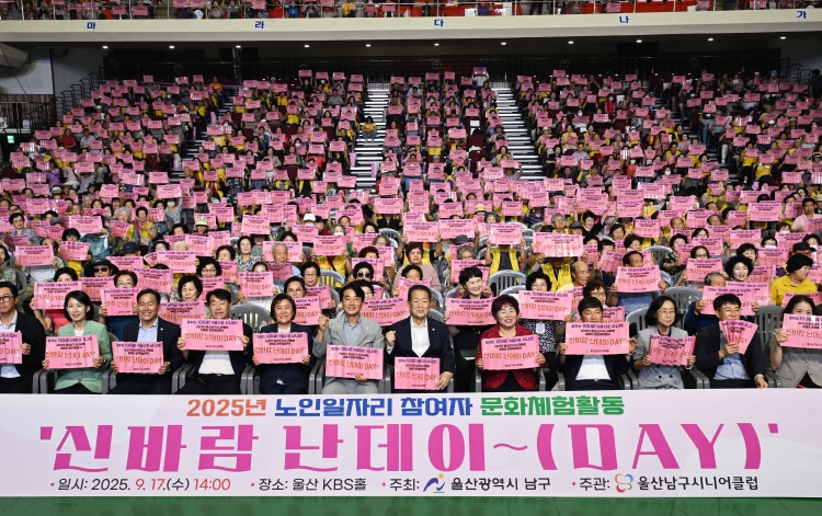 [무한뉴스=최진수 기자] 울산 남구는 17일 울산KBS홀에서 남구 노인일자리 참여자 2,300여 명이 참석하는 문화행사인 ‘신바람난데이~(Day)’를 개최했다.