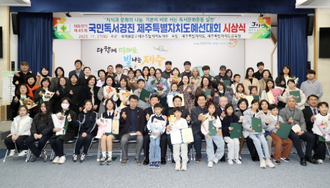 [무한뉴스=정민정 기자] 제주특별자치도는 27일 제주도청 탐라홀에서 ‘제45회 대통령기 국민독서경진 제주특별자치도예선대회 시상식’이 개최됐다고 밝혔다.