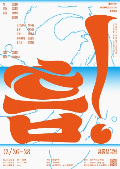 공연은 12월 26일 오후 7시 30분, 12월 27일 오후 3시·7시, 12월 28일 오후 4시 등 총5회에 걸쳐 부산 용천소극장에서 진행된다. 러닝타임은 약 60분이며, 자세한 공연 정보와 예매 방법은 포스터에 안내된 QR코드를 통해 확인할 수 있다.