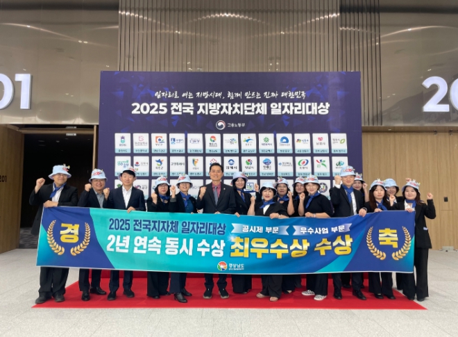 [무한뉴스=최진수 기자] 경상남도는 고용노동부가 주관한 ‘2025년 전국 지자자치단체 일자리대상’에서 공시제 부문과 우수사업 부문 모두 최우수상을 수상했다.