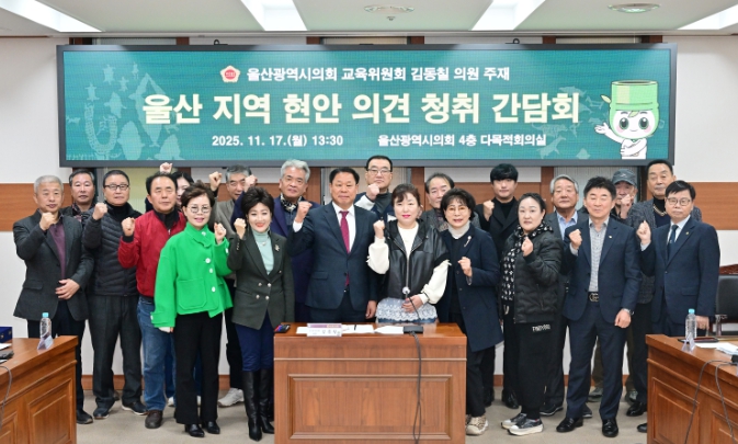 [무한뉴스=최진수 기자] 울산광역시의회 김동칠 의원(교육위원회, 달동ㆍ수암동)은 11월 17일 오후, 시의회 4층 다목적회의실에서 ‘지역현안 의견청취를 위한 간담회’를 열고, 현재 울산 및 남구에서 발생하는 현안에 대해 논의했다.