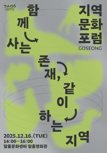 ‘2025 지역문화포럼’은 12월 16일 오후 2시부터 4시까지 진행되며, 사전 이벤트는 12시 30분부터 운영된다. 사전 접수 및 현장 접수로 운영되며, 신청은 고성문화재단 누리집을 통해 가능하다.