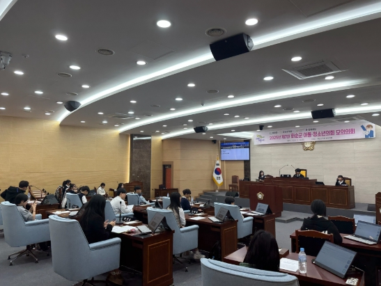 [무한뉴스=정민정 기자] 화순군은 지난 14일 제7대 아동·청소년의회가 화순군의회(의장 오형열)를 방문하여 의장을 비롯한 4명의 군의원이 함께한 가운데, 아동·청소년 시각에서 발굴한 새로운 정책 제안을 발표하는 모의의회 체험 시간을 가졌다고 밝혔다.