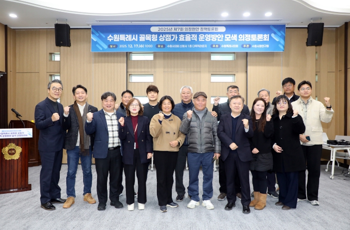 또한 장 의원은 “오늘 토론회는 상권별 특성과 현장의 목소리를 반영한 맞춤형 육성 전략을 함께 고민하는 자리”라며, “수원시의회와 수원시가 함께 골목형 상점가가 자생력과 경쟁력을 갖춘 지역 상권으로 성장할 수 있도록 정책적 지원과 협력을 이어가겠다”고 밝혔다.