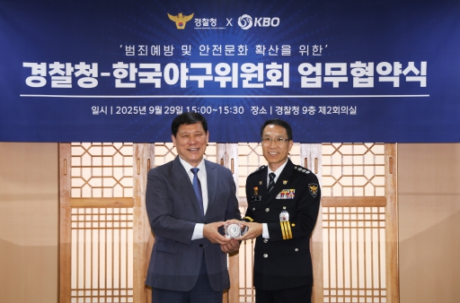 [무한뉴스=최진수 기자] KBO와 경찰청(청장 직무대행 유재성)은 9월 29일(월) 경찰청에서 업무 협약을 체결했다.