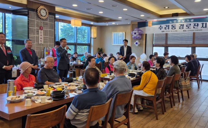 [무한뉴스=손성기 기자] 군포시 수리동 주민자치회(회장 고진해)는 제29회 노인의 날을 맞아 지난 10월 2일 수리동 어르신들을 대상으로 경로잔치를 개최했다. 이번 행사는 하은호 군포시장, 이학영 국회부의장 등 여러 내빈과 수리동 직능단체장들이 어르신 100여 명과 뜻깊은 자리를 함께했다.