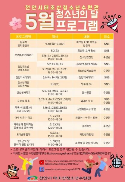 천안시태조산청소년수련관, 5월 청소년의 달 프로그램 운영