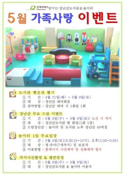 꿈꾸는 장난감 도서관과 놀이터는 더욱 안전한 놀이공간으로 탈바꿈하고 가정의 달 가족사랑 이벤트도 준비했다.