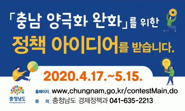[무한뉴스] 충남도는 도내 양극화 문제 해결을 위해 도민뿐만 아니라 충남 양극화에 관심 있는 전 국민을 대상으로 정책 아이디어를 오는 15일까지 공모한다.