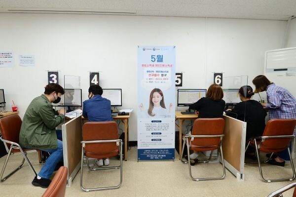 통합 신고센터에서는 방문 납세자의 수입 및 기본사항을 조회해 순번 대기표에 따라 각 신고창구에서 접수를 진행한다.