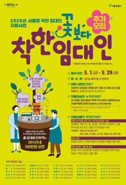 박준희 구청장은 “임차인과 임대인의 상생을 위한 ‘착한 임대인 운동’에 많은 관심과 참여를 보여주셔서 깊이 감사드리며 소상공인들에게는 어려움을 극복하고 일어날 수 있는 큰 희망이 될 것”이라며 ”지원 자격을 갖춘 임대인 분들께서는 기간 내 ‘서울형 착한 임대인 지원사업’에 꼭 신청하시길 바란다“라고 말했다.