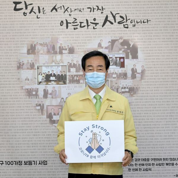 문 구청장은 ‘Stay Strong - 코로나19 함께 이겨냅시다’란 글과 비누 거품 및 손을 마주 댄 이미지가 담긴 팻말을 들고 캠페인에 동참한 뒤, 김영종 종로구청장, 이동진 도봉구청장, 이성 구로구청장 등 3명을 다음 참여자로 지목했다.