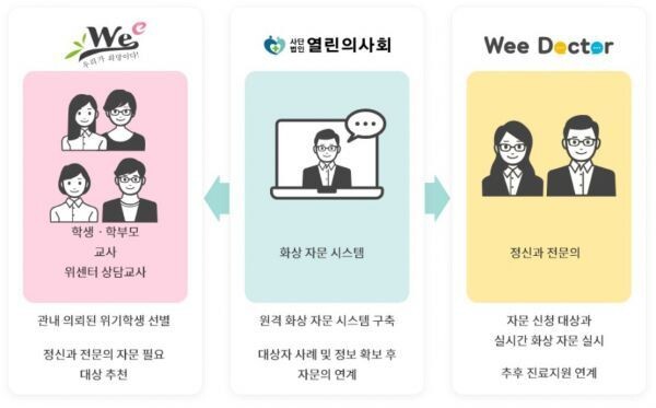 특히 위센터에서는 정신의학적 자문이 필요한 고위기 학생을 대상으로 심리치료 자문 서비스인 ‘자문의 상담’이 운영 중에 있으며 정신건강 의료시설에 접근성이 상대적으로 낮은 지역을 위한 원격화상 상담시스템인 ‘위닥터’ 사업을 확대· 강화해 위기학생에게 정신과 전문의 의료 자문서비스를 제공하고 있다.