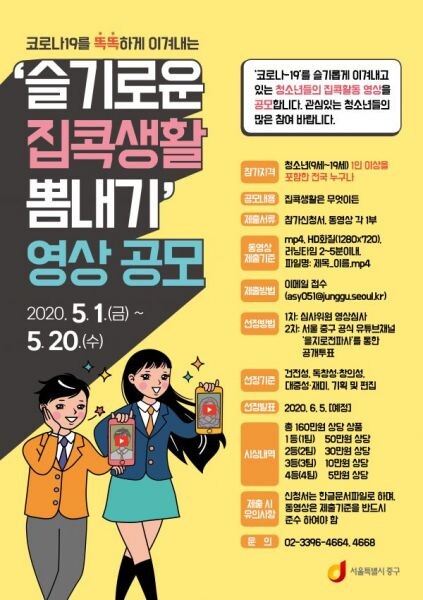 [무한뉴스]중구가 코로나19로 학교생활 잠시 멈춤 상태인 청소년들을 위해 '슬기로운 집콕생활 뽐내기' 영상을 공모한다.