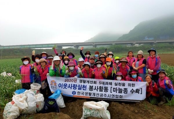 [무한뉴스] 한국생활개선공주시연합회는 지난 6일 코로나19 여파로 영농철 일손부족으로 어려움을 겪고 있는 마늘재배 농가를 방문해 일손 돕기 활동을 펼쳤다.