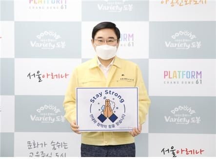 이동진 도봉구청장은 “Stay Strong-연대와 협력의 힘을 믿습니다”라는 응원문구를 담은 로고가 담긴 팻말을 들고 캠페인에 동참한 뒤, 채현일 영등포구청장, 정원오 성동구청장, 김미경 은평구청장을 다음 참여자로 지목했다.