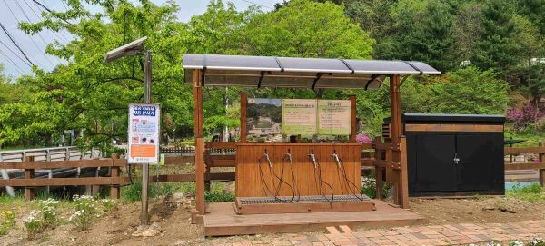 분사기는 친환경 에너지 태양광을 이용해 별도의 전력 소모가 없으며 충전식 야간등이 부착되어 있어 야간 이용객들도 손쉽게 이용할 수 있다.