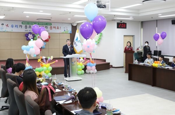 김동일 시장은 “지금쯤이면 새 학기 적응이 끝나고 친구들과 함께 마음껏 뛰어놀아야 할 때이지만 올해는 코로나19로 담임 선생님은 물론 같은 반 친구들의 얼굴도 볼 수가 없어 많이 답답할 것으로 생각한다”며 “시는 미래 주인공인 여러분들의 하루하루가 늘 행복하고 희망으로 가득하도록 어린이 여러분의 꿈을 언제나 응원한다”고 축복했다.