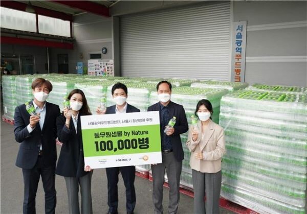 [무한뉴스] 서울시-풀무원샘물이 손잡고 코로나19로 어려운 청년 소상공인을 돕기 위해 청년 소상공인 긴급지원 사업에 먹는샘물 34,500병을 지원했다.