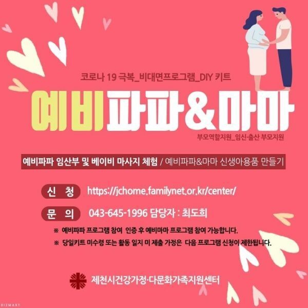 [무한뉴스] 제천시건강가정·다문화가족지원센터는 지역 내 출산을 앞두고 있는 예비 부모들을 위한 비대면 프로그램을 오는 29일까지 진행한다.